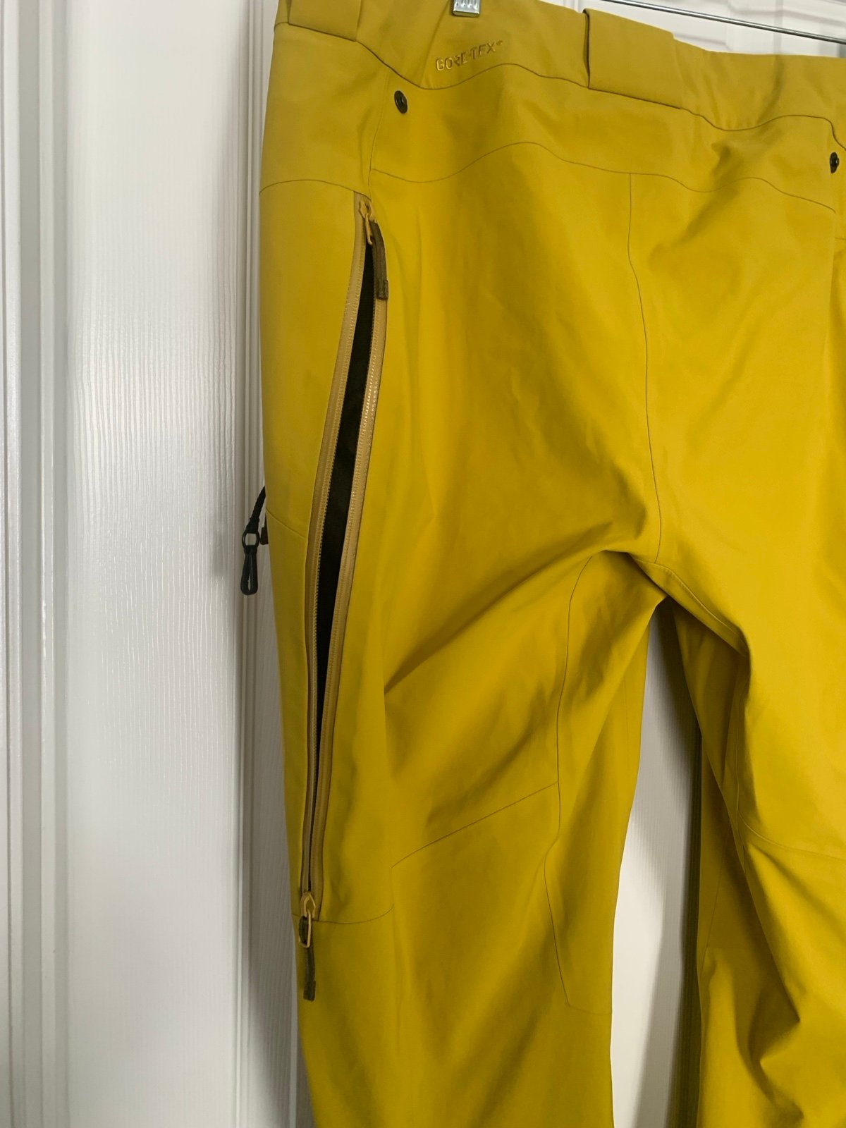 Preowned gently used Arc'teryx Yellow Gore-tex Sabre Snow Pants size XL. There is a small amount of wear shown in photos. Still in wonderful condition.