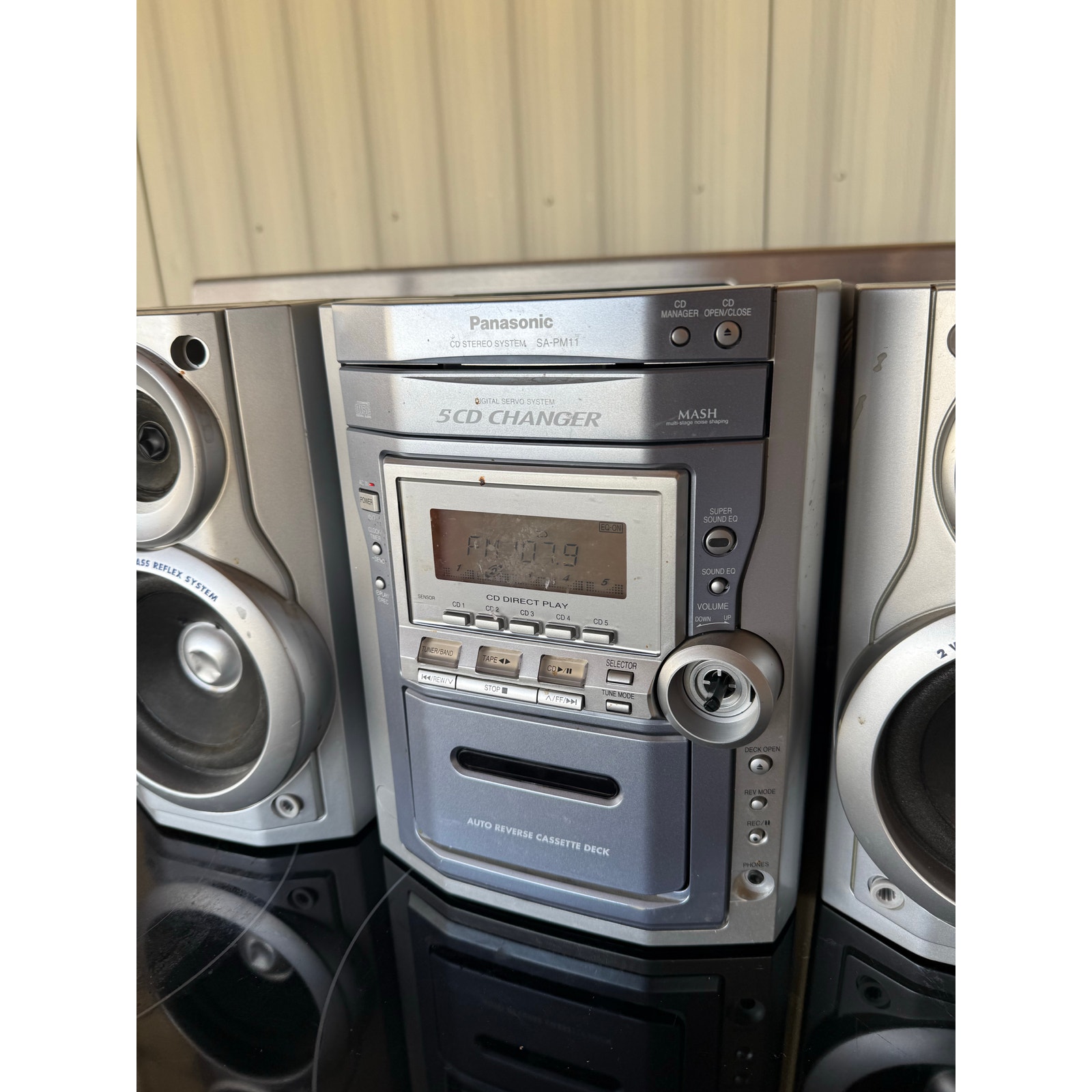 • Features: 5-CD changer, dual auto-reverse cassette deck, AM/FM radio tuner