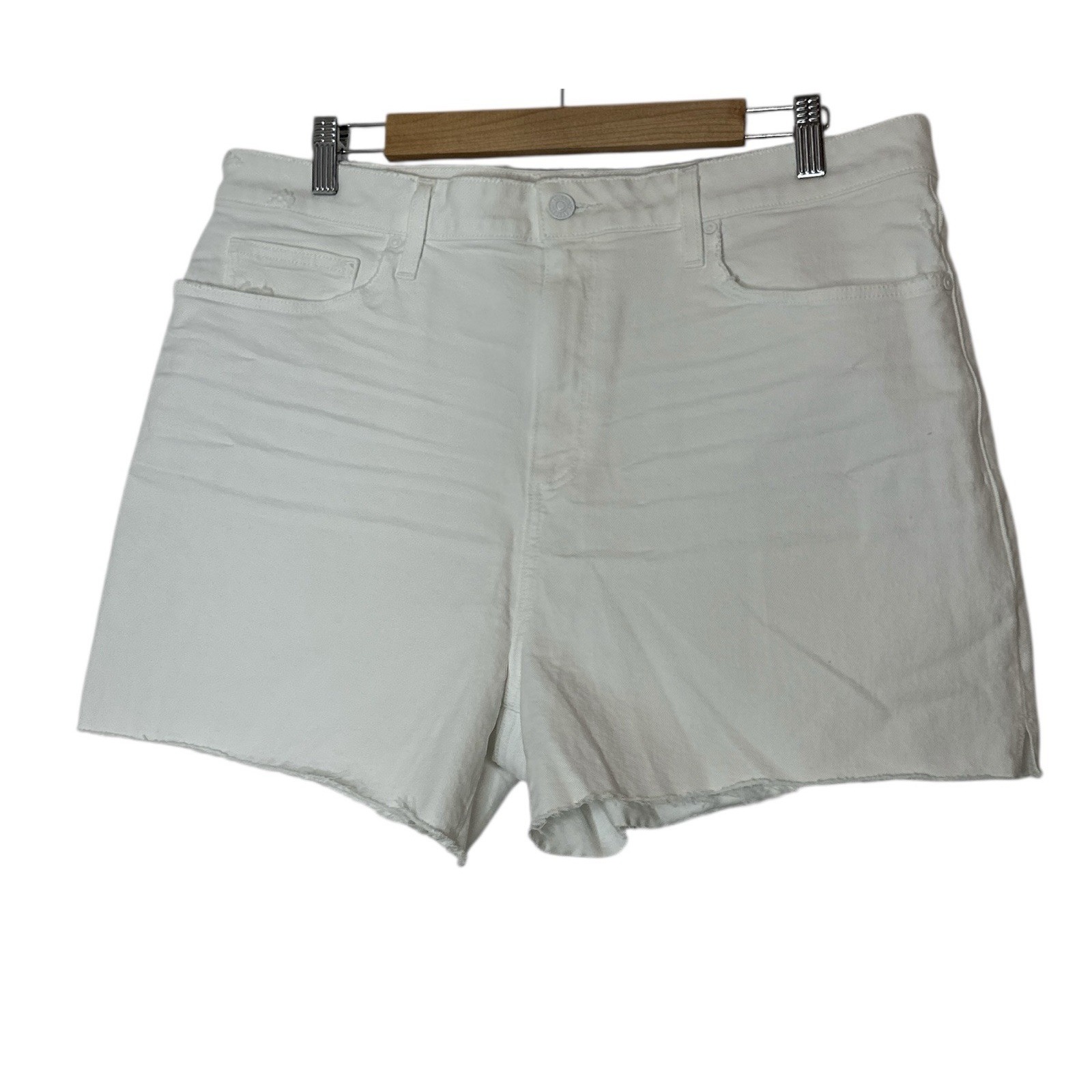 The Paige Dani Shorts in women's size 33 feature a high waist and distressed light blonde denim fabric, giving them a trendy and beachy look. With a solid pattern, regular fit, and 4-inch inseam, these designer shorts are perfect for vacation, resort wear, or a classic summer style. Made by Paige, a trusted brand in denim, these shorts are a stylish and flattering addition to any woman's wardrobe.
