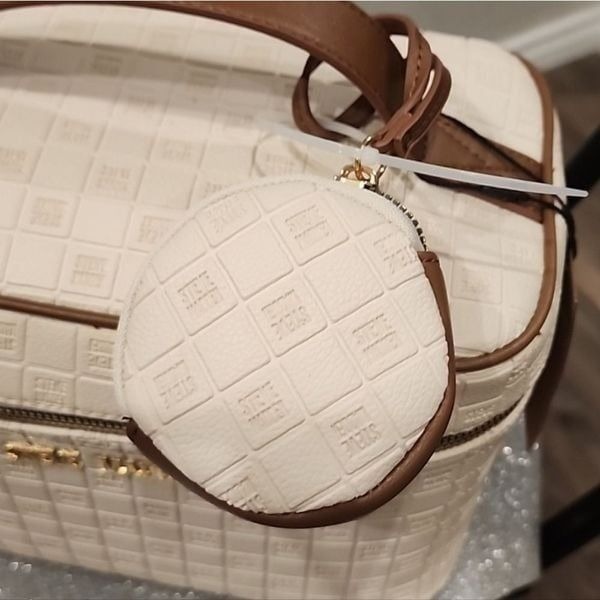 Steve Madden Blick Logo Cosmetic Case w/Detachable Coin Purse- Oatmeal