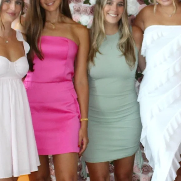 Selmacilek Strapless Pocket Detail Mini Dress in Fuschia