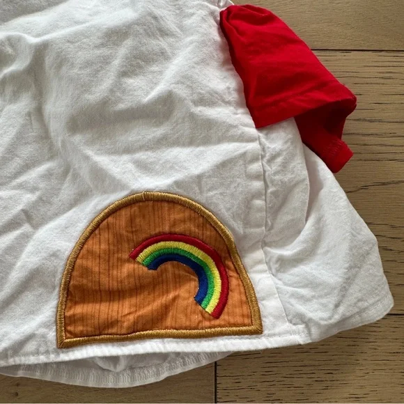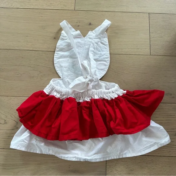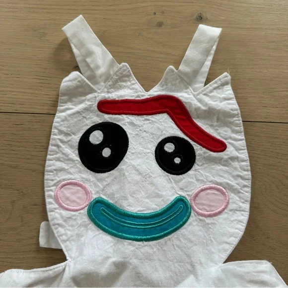 This charming Halloween costume features a white pinafore style with a vibrant red ruffle, creating a delightful contrast. All accents on the front designed to represent the Toy Story character Forky.Adjustable white straps ensure a comfortable fit for endless fun. Size was made to fit a child’s 6, but the elastic waist means there is a bit of wiggle room either way.Please carefully review each photo before purchase as they are the best descriptors of the item. All kids items are open to deeper discount when bundled-make an offer! My single item price is firm. No trades. First come, first served. Thank you! :)