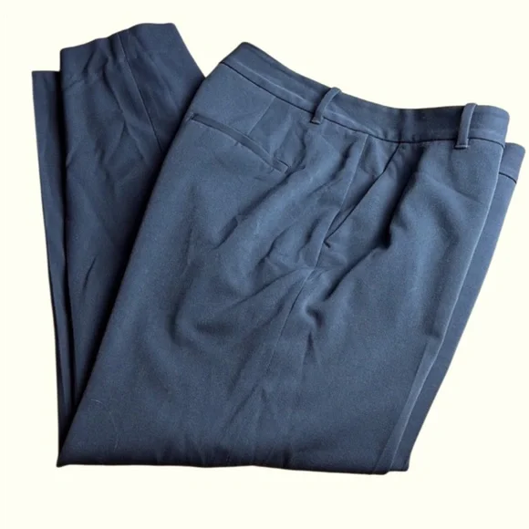 Nice pre-owned condition See photos for measurements Color is hard to describe- Steel grayish in color See last photo to compare to black on the right and blue on the left.Polyester rayon and spandex StretchyMachine Wash or dry clean
