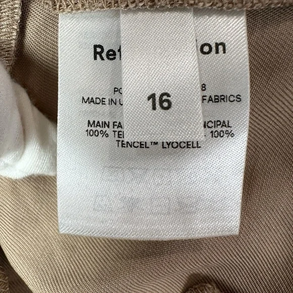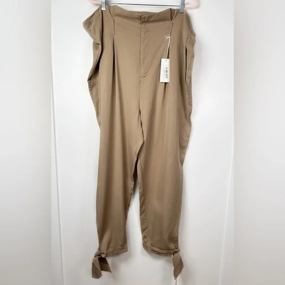 NEW Reformation Avalon High Waist Paperbag Pants Khaki Beige Plus Size 16 missing belt 43 in length, 27 in inseam, 49 in waistPower pants. This is a high rise pant with a paperbag waist, ankle ties and a detachable belt. The Avalon is relaxed fitting throughout. Adjustable ankle strap. Detached belt. High rise. Paperbag waist. Side pockets. Slim fitting. Unlined. 🌟 Offers Welcome 🌟 📦 Ships Fast 📦