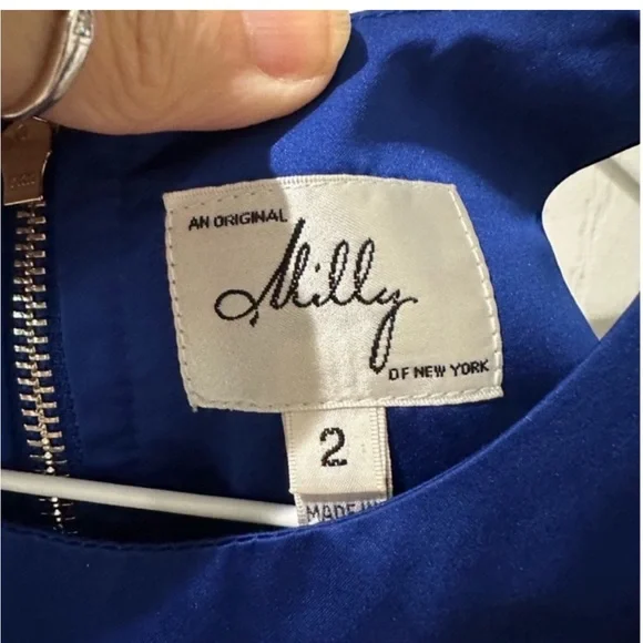 Go for a regal look at your next formal event with this dress from Milly! A vibrant royal blue tones and asymmetrical flounce add edge to this luxe frock. Pair with sparkly heels and a clutch for a gorgeous eye-catching look. Exposed zipper back. Back slit. Lined.Shell: 55% Polyester, 45% Cotton Lining:100% PolyesterEvent, dance, reception, black tie, formal, prom, wedding reception, bridesmaid, mother of the bride, grandma chic, edgy, Lux, sorority, holiday, cocktail party